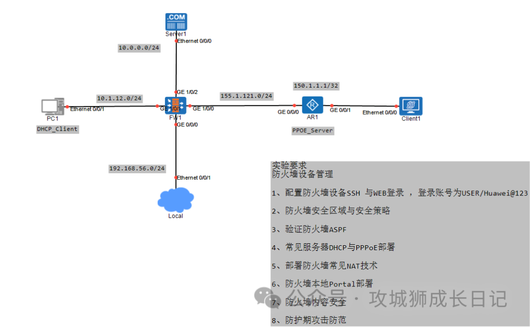 今天是完成第1个知识点:配置防火墙设备SSH 与WEB登录 ,登录账号为USER/Huawei@123