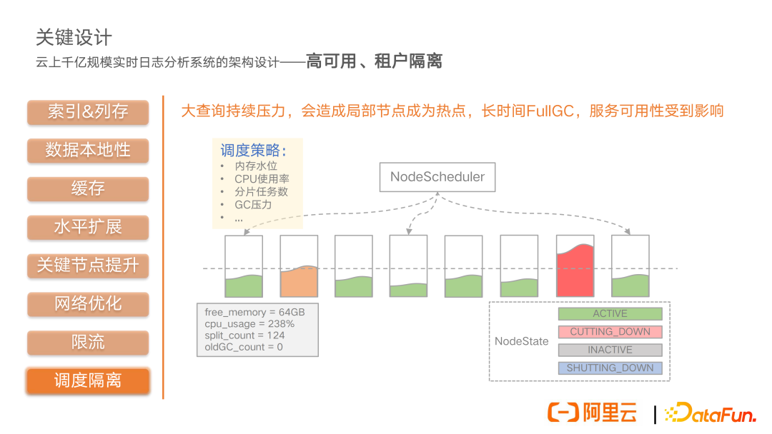 最后,通过分层的限流以及调度隔离,实现了整体的服务的高可用以及多租户的隔离,可以稳定支撑阿里集团数十个 BU,数千条业务线的日志分析需求。