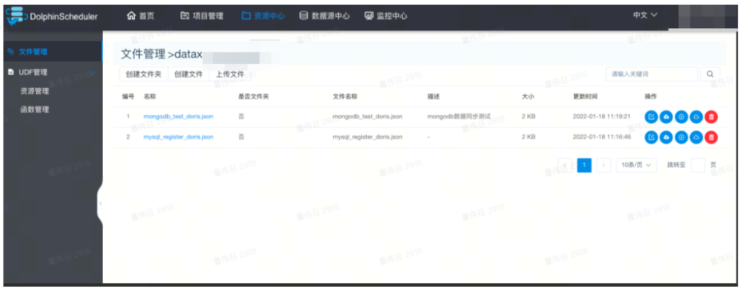 在资源中心创建各个团队文件夹,并在文件夹中创建对应datax文件
