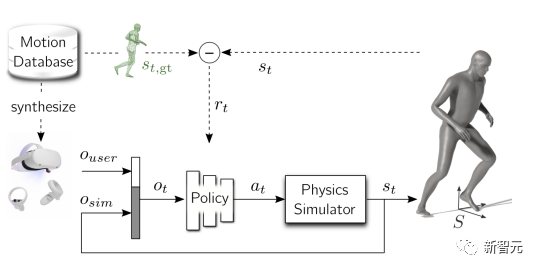 这篇论文中,Meta提出了一个强化学习框架,接收来自HMD和两个控制器的稀疏信号,并模拟可信的、物理上有效的全身运动。