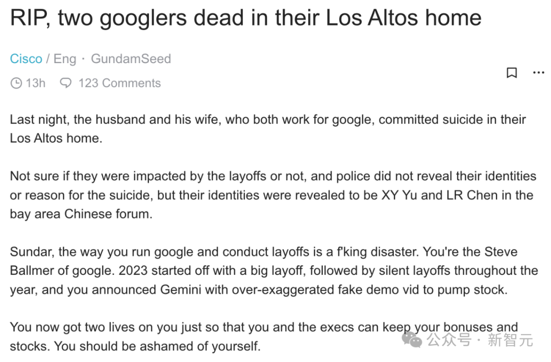 在Blind上,一则谷歌华人员工疑似自杀的新闻,更让谷歌蒙上了舆论的阴影。