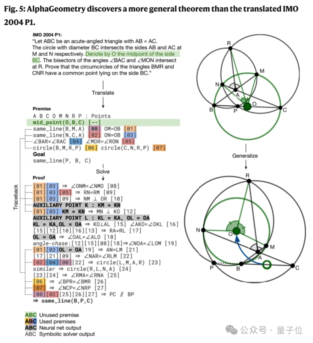 在做题过程中,AlphaGeometry还发现了2004年IMO竞赛题中一个未使用的前提条件,并因此发现了更广义的定理版本。