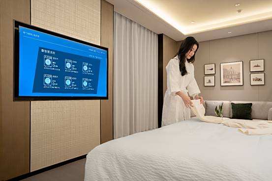 这家酒店的客房设施可以说代表了“前AI时代”的水平,而随着TCL持续带来解决方案更新,在新一代AI大模型加持下,在许多方面进一步重塑酒店的服务生态。