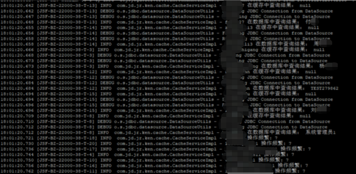 查看日志结果:可以看出大量请求到达数据库,并且同一个pin或id执行了多次数据库查询