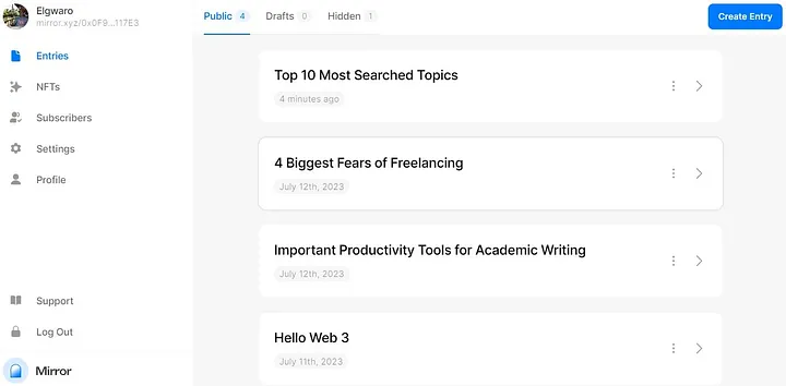 此外,Mirror 支持以太坊名称服务 (ENS),使作者能够将他们的个人资料与其 ENS 名称关联起来。此功能增强了可发现性和可信度,因为可以通过独特的 ENS 名称轻松识别作者。