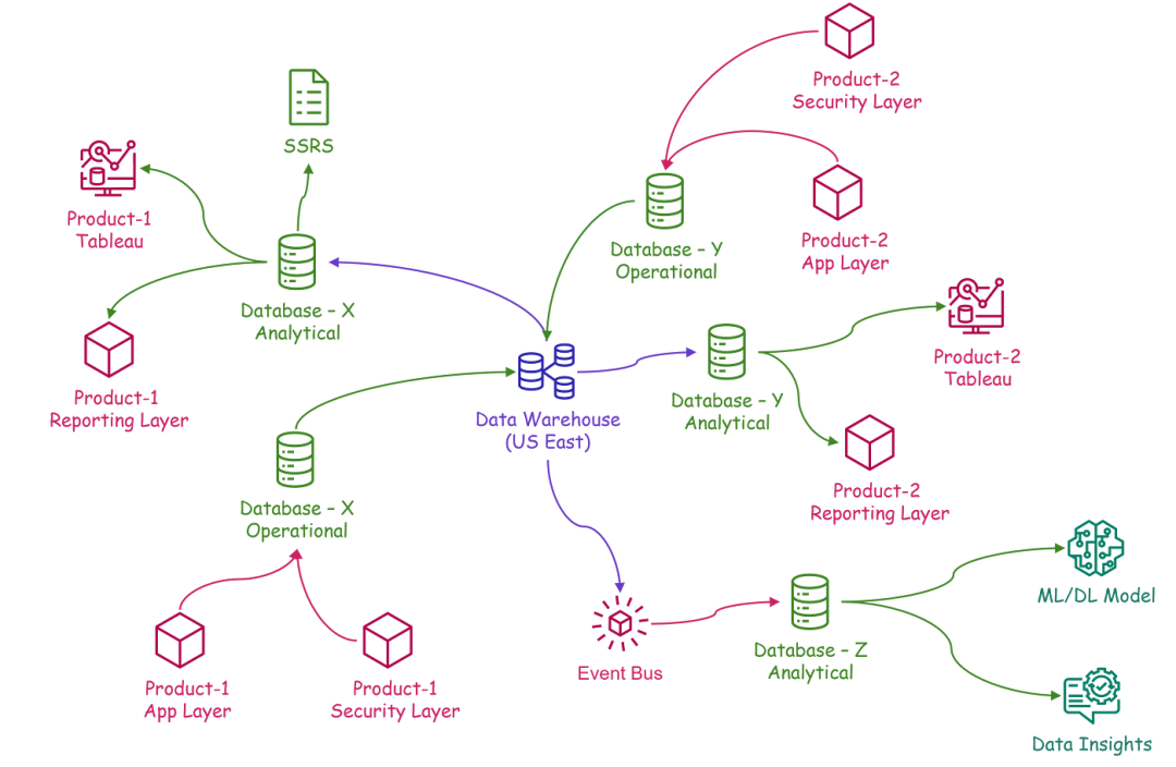 新应用程序或多或少是按领域驱动设计,这些应用程序与更特定于应用程序的数据非常紧密,这给数据库工程团队带来了新的挑战,要为满足所有方面的目的提供有组织的解决方案,如下所示: