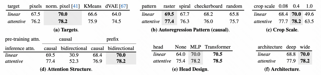 在优化目标上,文中尝试了两种方法,第一种是直接拟合patch像素,用MSE进行预测。第二种是提前对图像patch进行tokenize,转换成分类任务,用交叉熵损失。不过在文中后续的消融实验中发现,第二种方法虽然也可以让模型正常训练,但是效果并不如基于像素粒度MSE的效果更好。